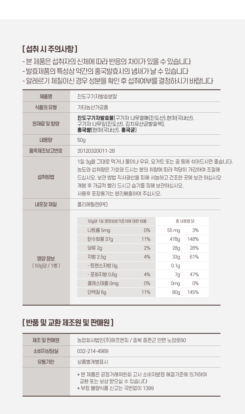 - 제품 개봉 및 섭취 후에는 반품 및 환불이 불가능합니다.